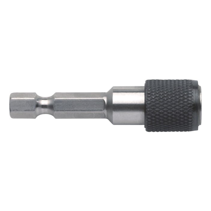 Bitsholder with quick coupling. For all 1/4'' hexagon systems C6.3 - E6.3 - double bits. Simple one-handed handling for quick bits replacement