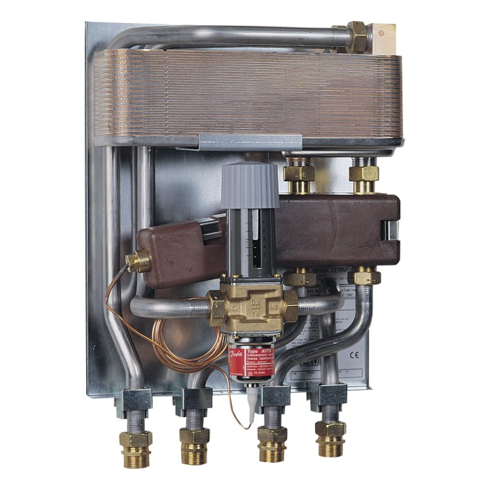 The water heater is regulated by a Danfoss AVTB valve, which is self-regulating and ensures uniform temperature of the domestic hot water.