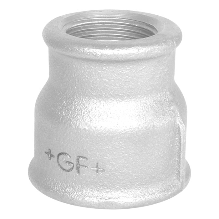Soft cast fittings 00 0001 - 000 341 meet the requirements of ISO 49-DS/EN 10242. Available in black and hot-dip galvanized version. Hot dip galvanizing is carried out with min. 500 g/m2 of zinc Zn 99.9 according to DS/EN 10242. Pipe thread made according to DS/ISO 7-1 DS/EN 10266-1. External threads are conical (Increase 1:16), internal threads cylindrical.