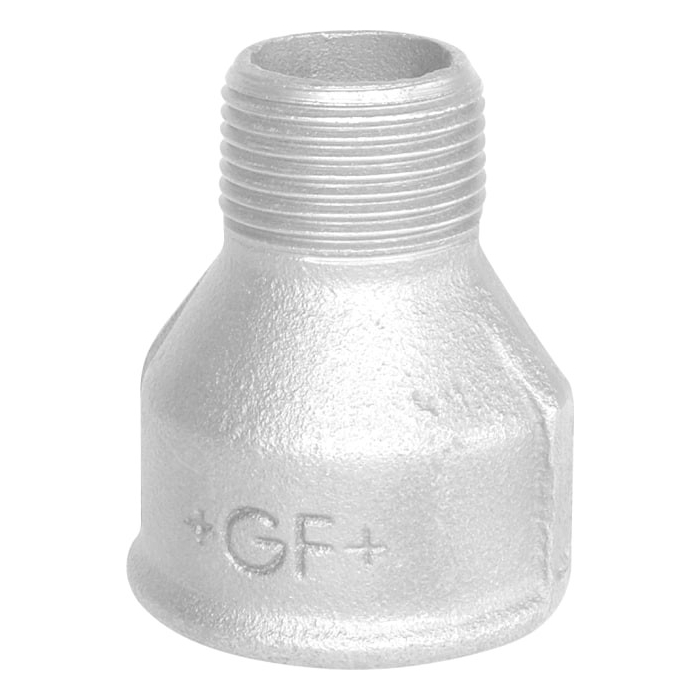 Soft cast fittings 00 0001 - 000 341 meet the requirements of ISO 49-DS/EN 10242. Available in black and hot-dip galvanized version. Hot dip galvanizing is carried out with min. 500 g/m2 of zinc Zn 99.9 according to DS/EN 10242. Pipe thread made according to DS/ISO 7-1 DS/EN 10266-1. External threads are conical (Increase 1:16), internal threads cylindrical.