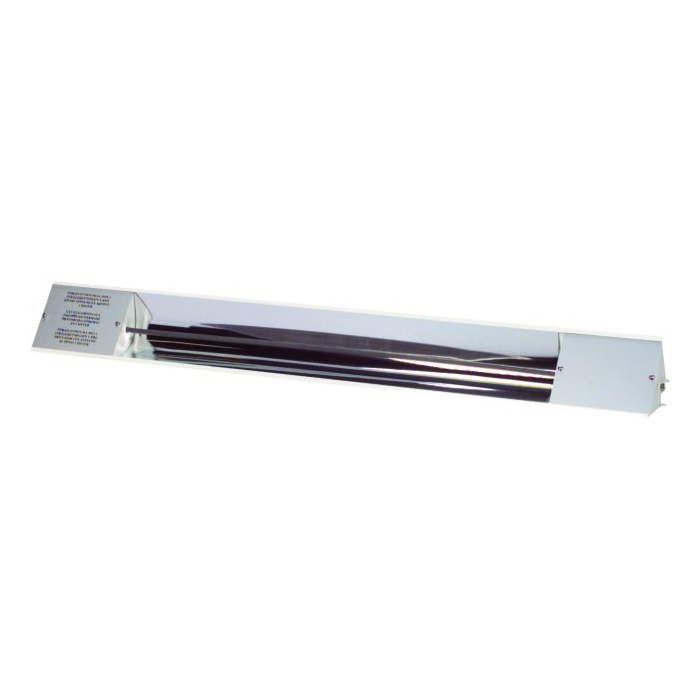 The radiant heater is made of electrically galvanized steel sheet and surface treated with polyester powder coating in white color.
