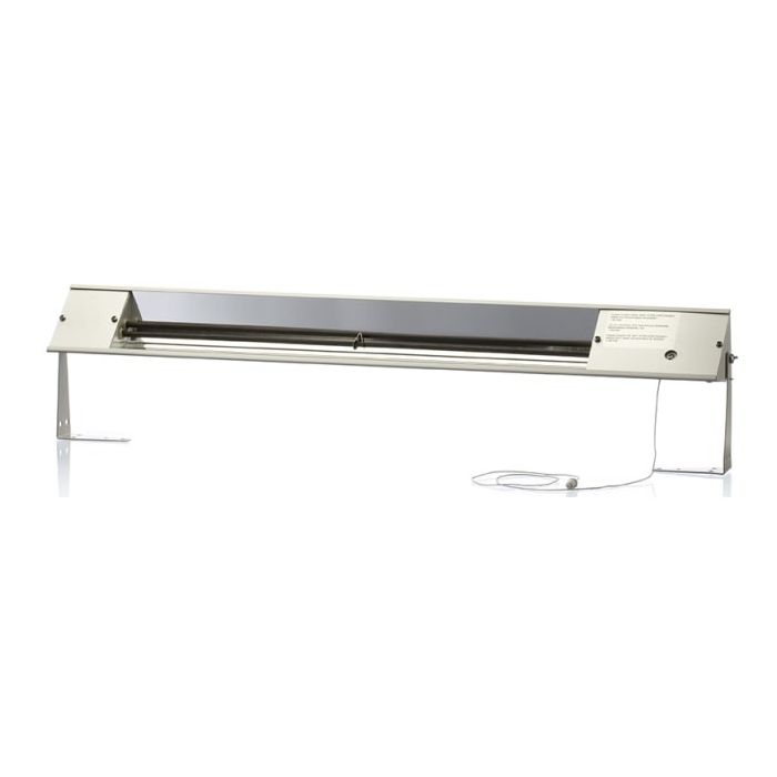The radiant heater is made of electrically galvanized steel sheet and surface treated with polyester powder coating in white color. The reflector is made of highly polished, anodized aluminium.