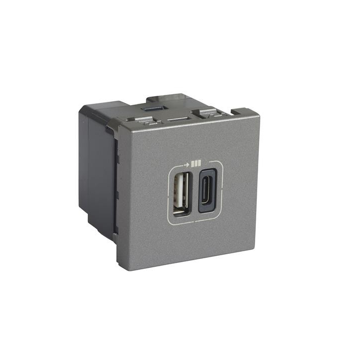 Description / Legrand Mosaic usb lader a+c 3.0a 2m alu