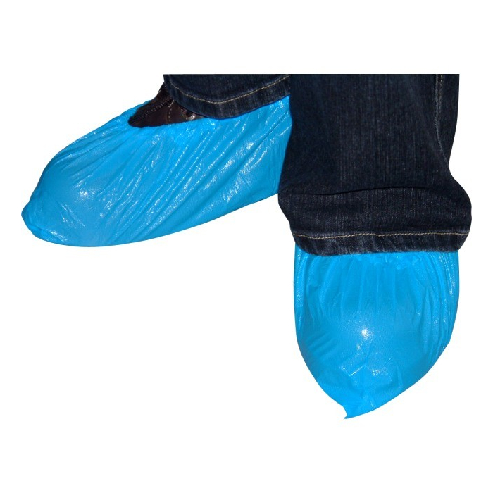 Shoes made of thin, blue polyethylene with elastic edge. 41 cm. 100 pieces in a package.